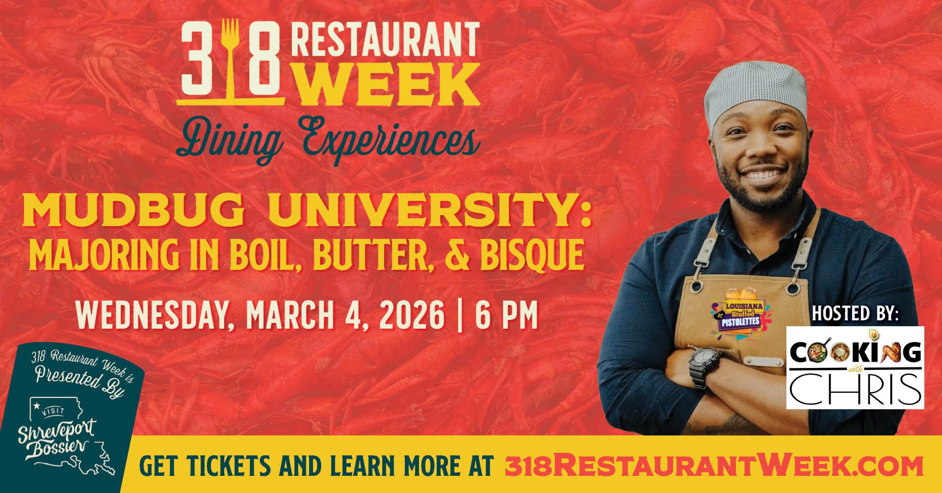 Mudbug University: Majoring in Boil, Butter, and Bisque is a hands-on Louisiana cooking class and dining experience designed to immerse guests in the culture, technique, and creativity behind one of our most iconic ingredients: crawfish. The cooking class and experience will include the following: